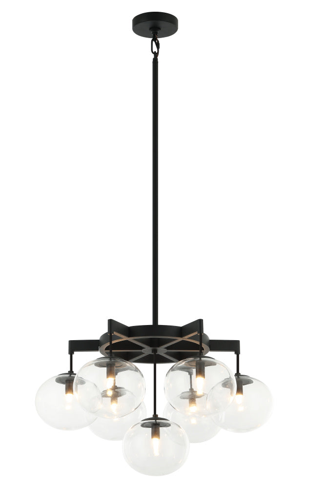 7 LT 24" DIAM "BULBUS" AGED GOLD/CEILING CLEAR GLASS CHANDELIER LED G9 LED 10W
