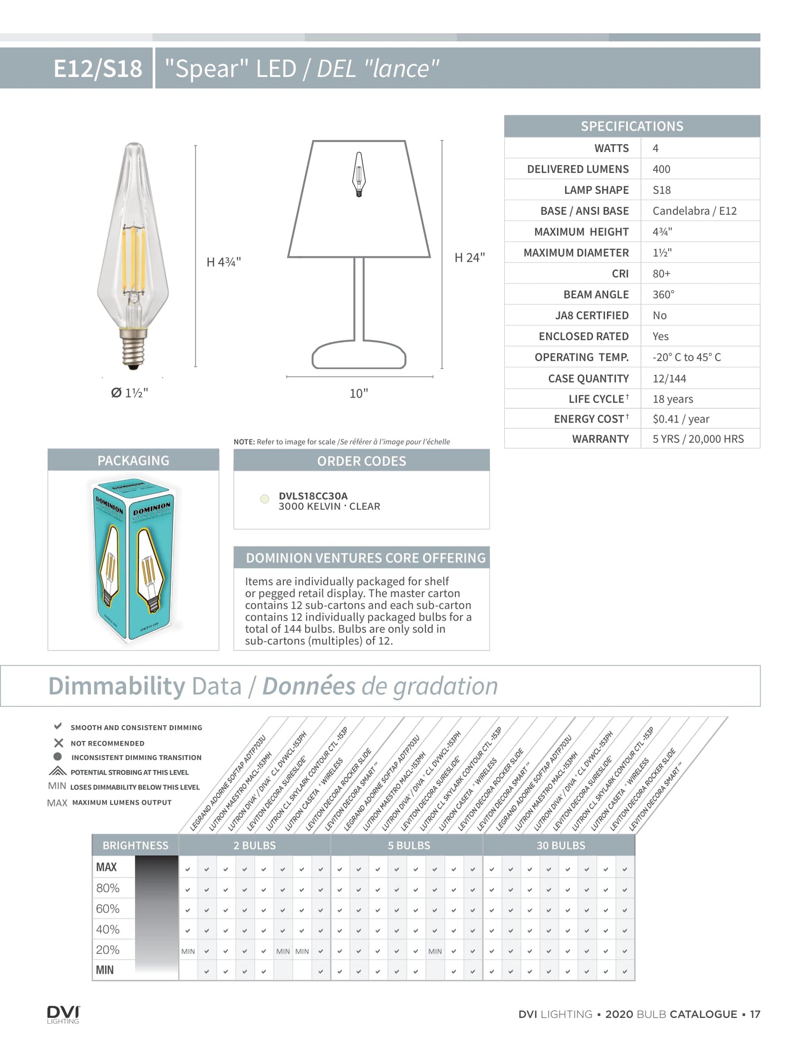 E12/S18- "Spear" Clear LED - by DVI Lighting