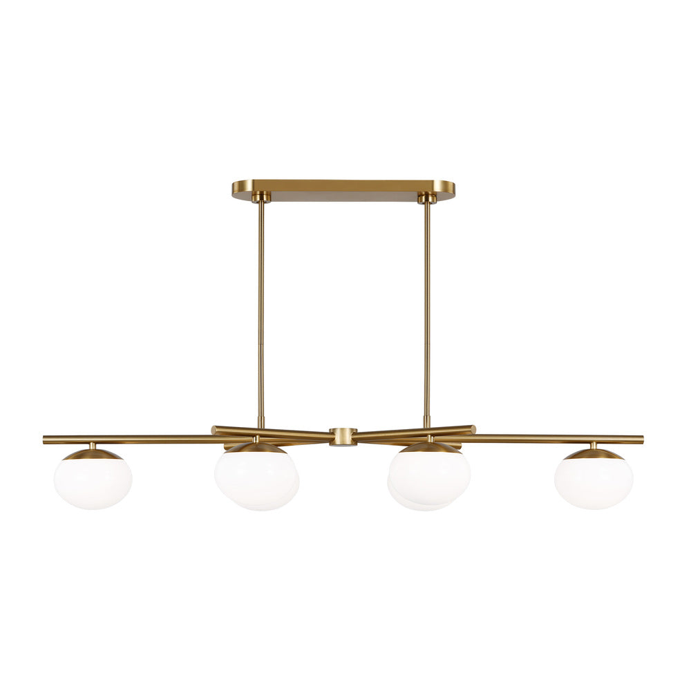 The Lune mid-century modern collection from Ellen DeGeneres is offered in two finishes including Aged Iron and Burnished Brass. The symmetrical abstract of the silhouette is deceptively simple with your attention being drawn to the milk glass shade featuring no visible hardware. We are expanding this floor lamp to a full series and adding an Aged Iron finish option. Lune has a simple yet sophisticated design. The slender metal frame features Aged Iron or Burnished Brass arms that are complete with a white glass globe at each end. The brass accents handsomely complement the black or brass frame to create a mid-century modern vibe.?