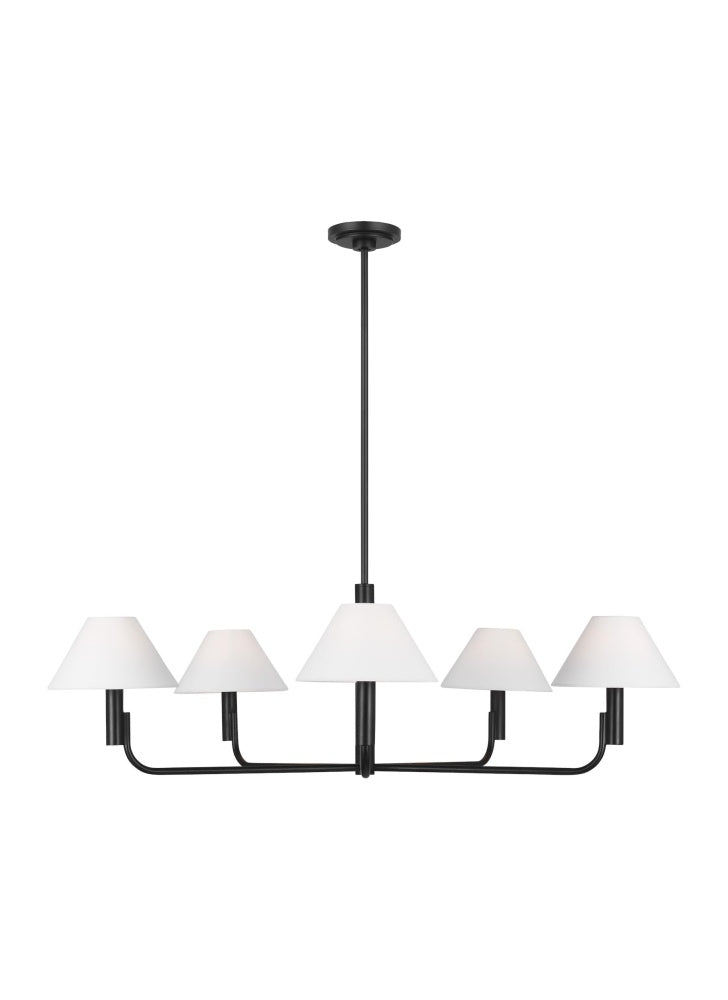 Elegant and modern the Colfax series by Sean Lavin features simple lines with unexpected details. From the stepped canopy to the offset candle tube and angled linen shades, the silhouettes will effortlessly accent interior decor styles of any aesthetic. The Colfax chandelier has a low, wide profile allowing it to hang in dining rooms of any size.