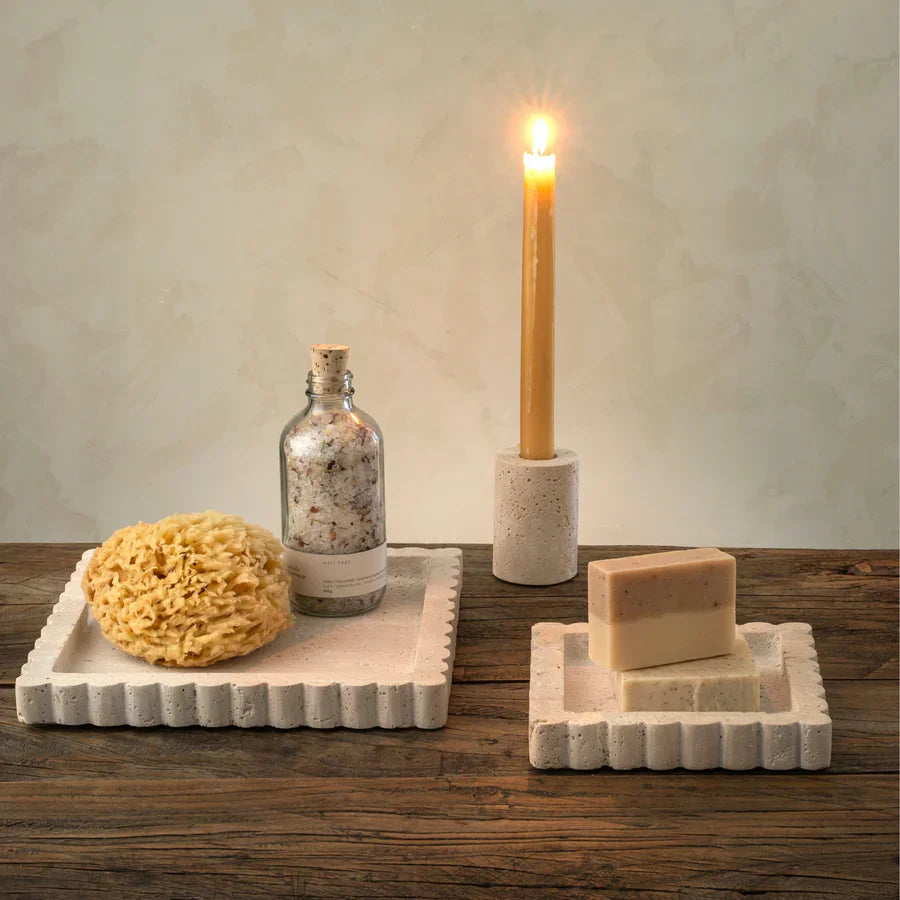 • Load image into Gallery viewer, Travertine Scalloped Square Tray S - by Indaba