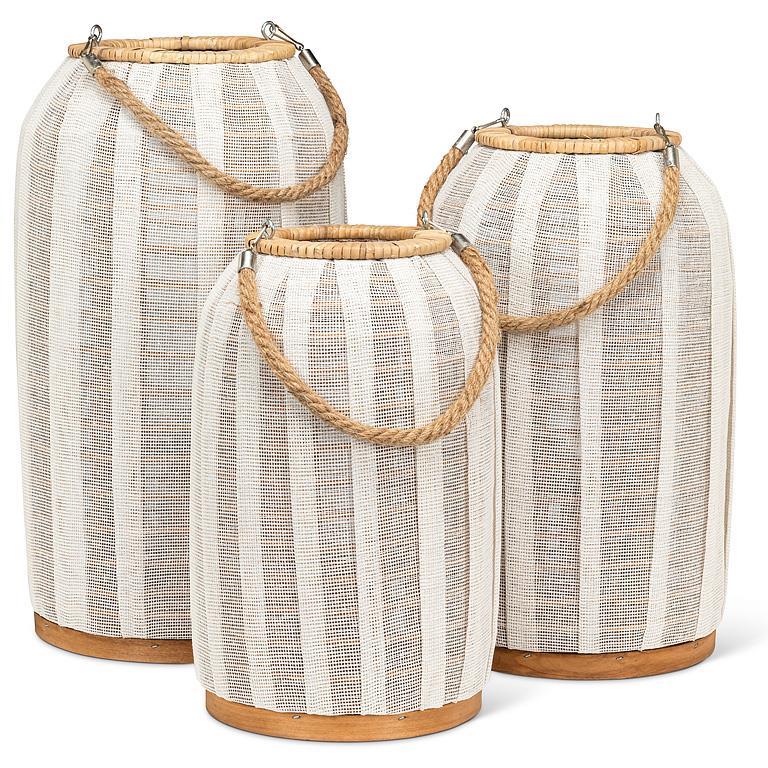 Tall and refined, this ivory lantern features a linen-style finish and jute handle for subtle contrast. An easy way to enhance indoor or outdoor lighting. Due to the natural materials, this lantern is more suited for indoor use. If using outdoor, use in fair weather and store indoors.