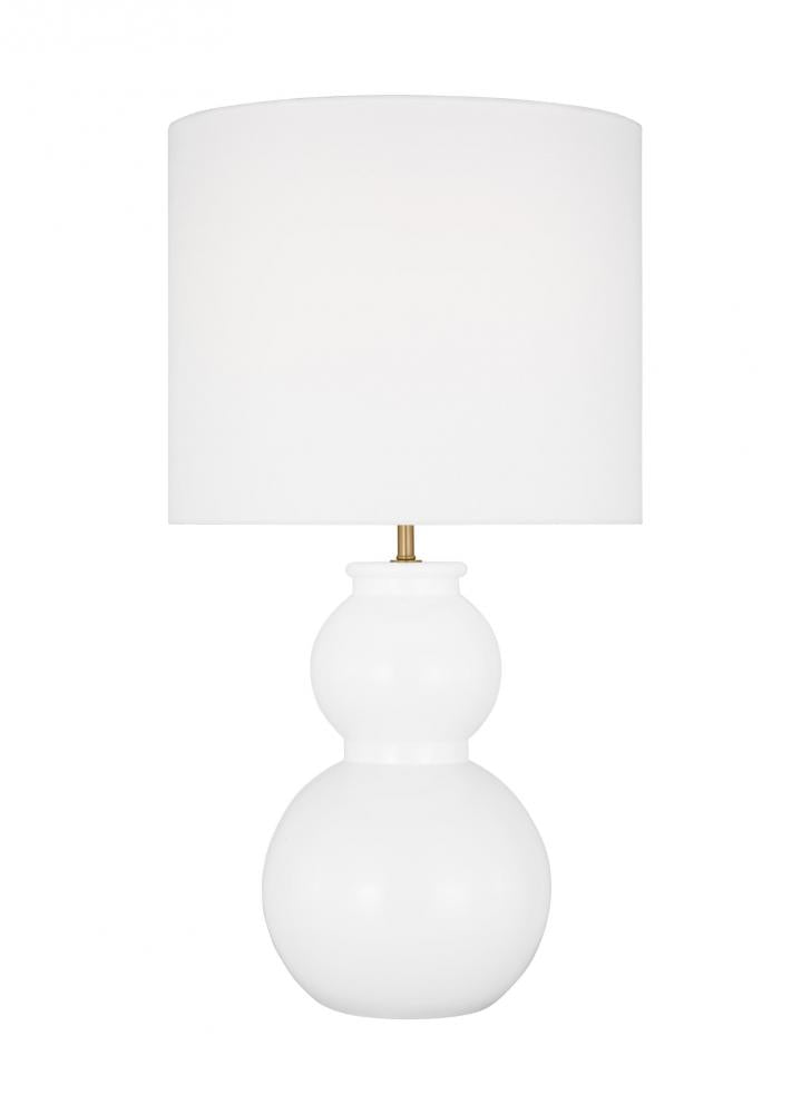 Designed by Drew & Jonathan Scott, Buckley is a classic gourd-style table lamp series in three saturated hues. Symmetrical lines give the traditional shape a modern look. Each is topped with a beautiful white linen shade; these table lamps are crafted of glass in three finishes that flow to the base.