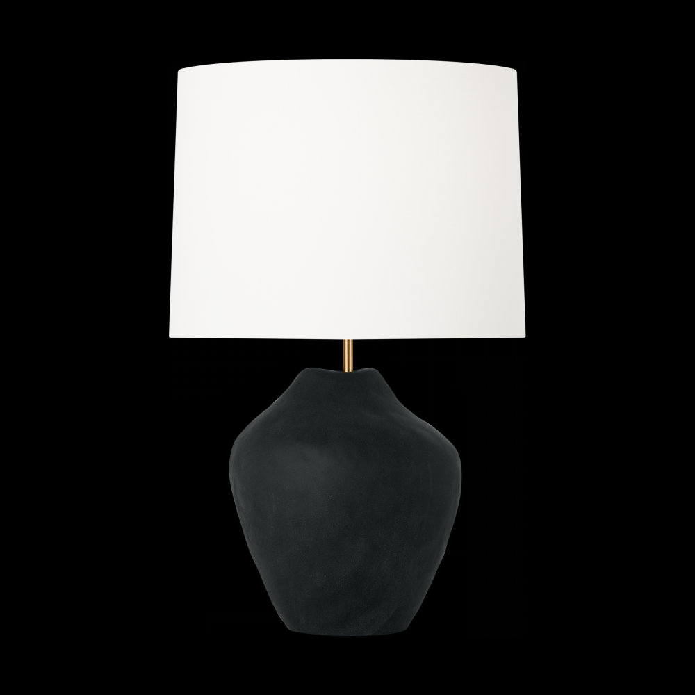 Handcrafted in ceramic, the Cadley One light table lamp by Hable has a uniquely shaped base and a black or white finish, making the Cadley table lamp an iconic design. Its crisp white shade and brass hardware perfectly accent the delicately detailed artwork. Bone offers an enduring presentation of the contemporary form that competently revitalizes your decor space. A white linen shade caps this piece off with an understated style perfect for traditional and contemporary ensembles.