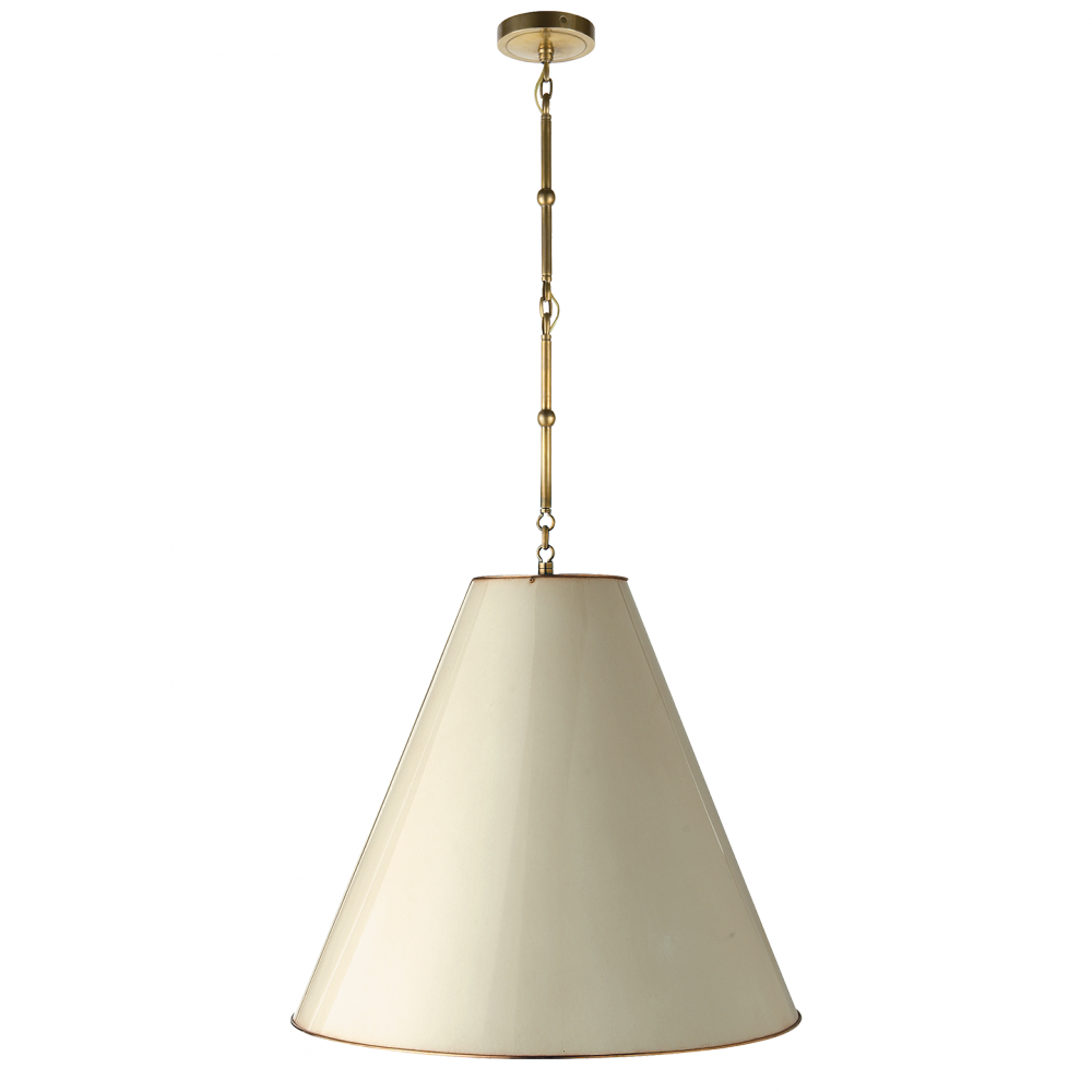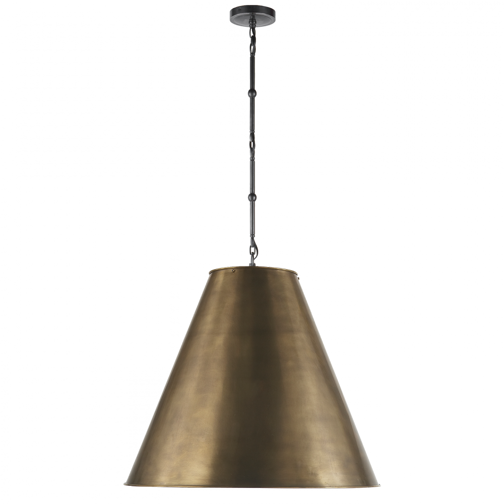 Goodman Large Hanging Lamp in Hand-Rubbed Antique Brass with Hand-Rubbed Antique Brass Shade