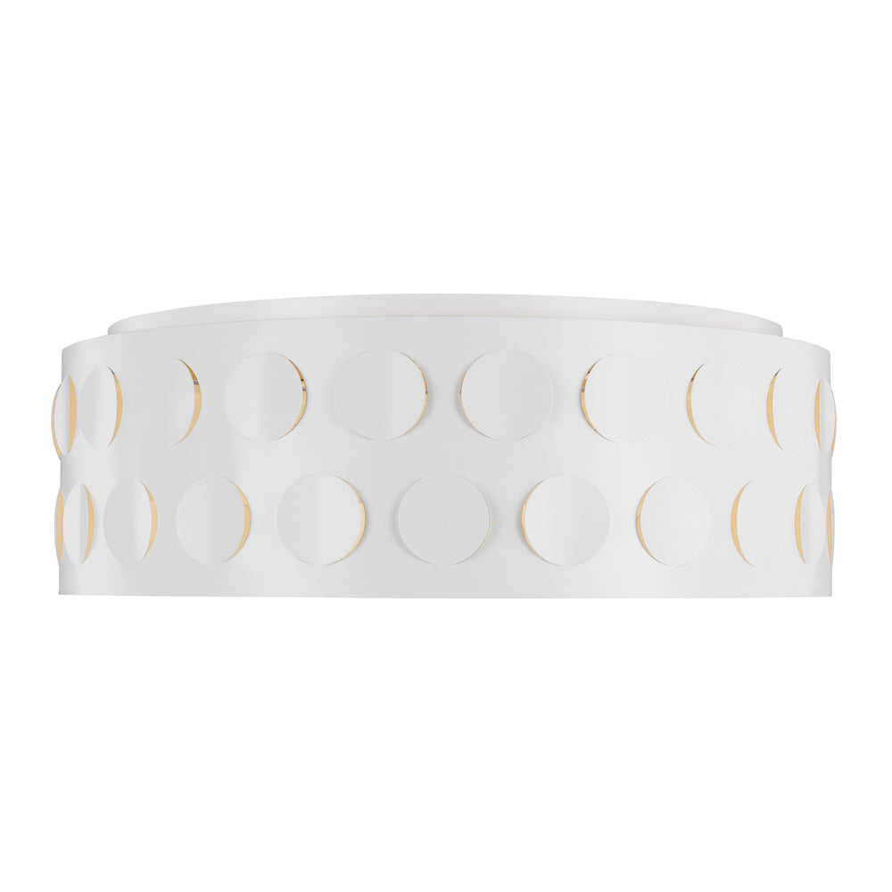 Dots are iconic to the kate spade branda simple and playful graphic motif. Dottie takes an iconic kate spade dot motif and cuts it into metalcreating a playful ambient light effect. A classic metal drum shade with an extra twist of perforated pattern. A matte white steel shade with an etched glass diffuser creates a gentle muted glow. Ideal for any hallway, foyer, bedroom, bathroom, or wherever overhead illumination is needed in transitional settings.