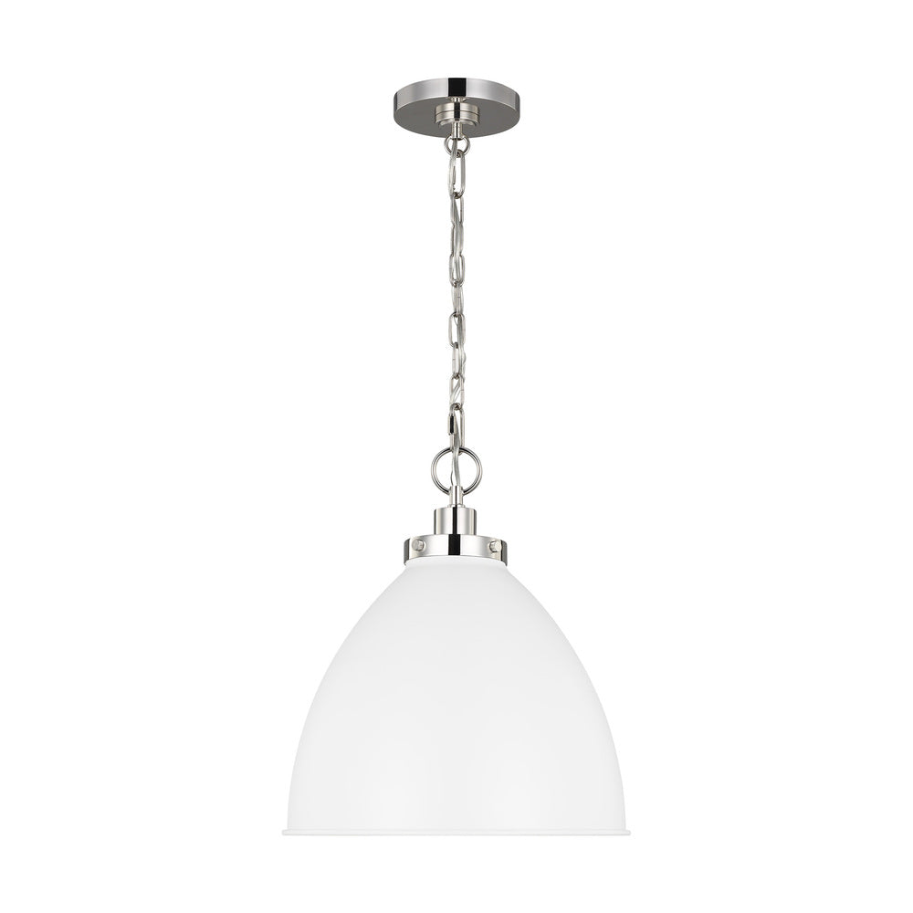 Inspired by various classic utility silhouettes - from factory lighting to barn sconces - capped by contrasting metal hardware. Each shade of the Wellfleet series by Chapman & Myers is available multiple sizes of 3 versatile profiles; either a flat farm dome, a traditional factory dome, or tapered cone. The shades are available with either a black or white finish and are paired with either a burnished brass or polished nickel collar, chain and canopy.