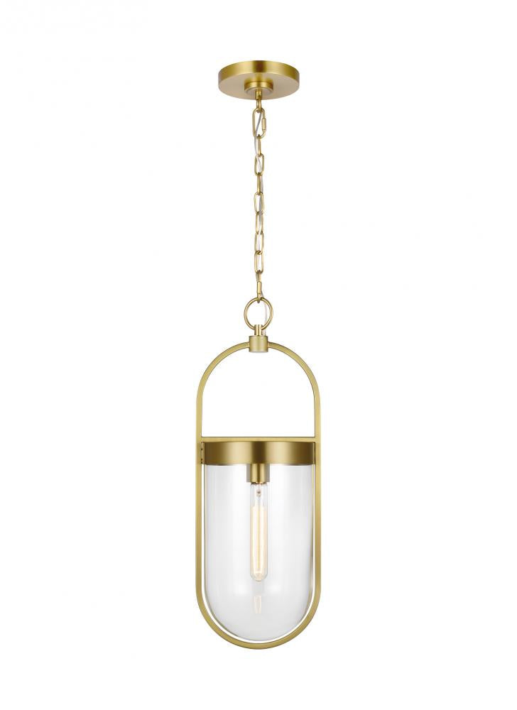 The Blaine one light indoor pendant in aged iron Chapman & Myers is a simple modern interpretation of a classic glass smoke bell lantern. Each pendant is suspended from a unique oval frame which is circumscribed around an inner glass shade. The glass is held in place by a banded metal collar at the top and lit from within with a single filament bulb.