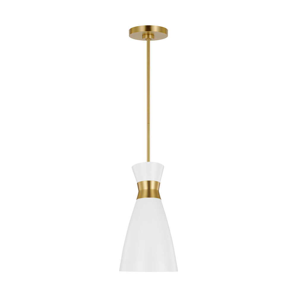 Heath is a chic pendant crafted of metal and a center wrap detail. The cleanness of the contemporary look gives the fixtures a slightly industrial feel. Available in wide or narrow design options. Notice how the top and bottom frame contrast with the metal band. The Heath one light indoor pendant in Midnight Black with Burnished Brass features modern mid-century refinement and luxe materials for a minimalist aesthetic.