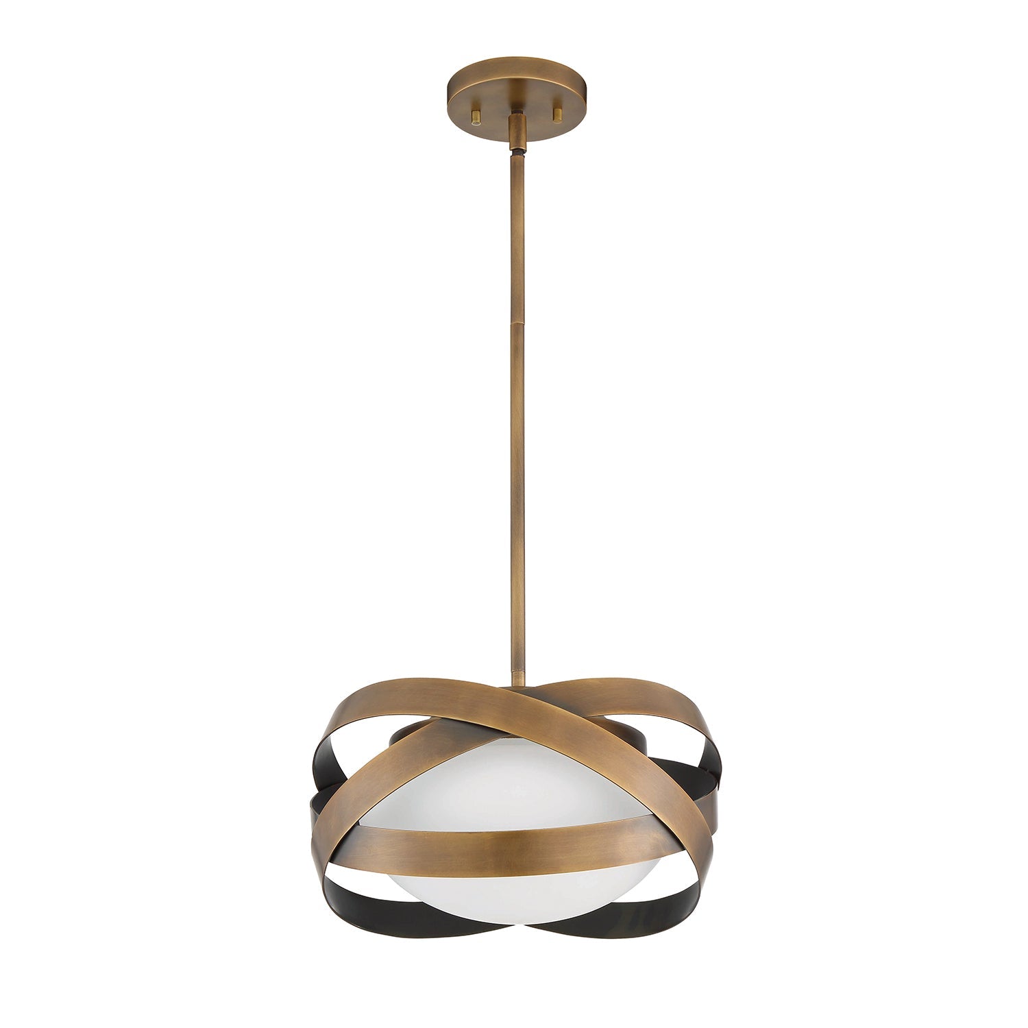SATURN Med. Base Metal & Glass Pendant in a Brass finish