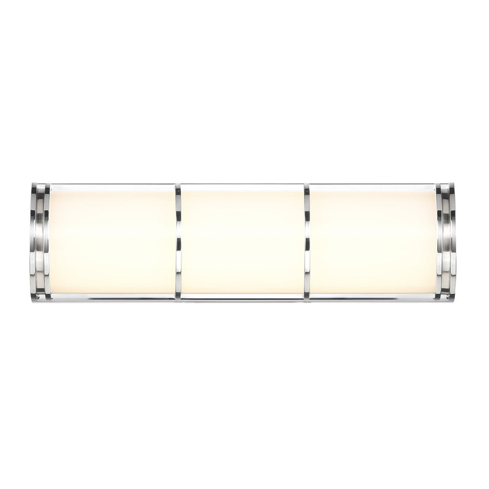 This Savoy House Harper LED wall light has a super sleek and chic look that makes it an ideal solution for bathroom vanities, hallways, foyers or any other space that needs a big dose of bright, contemporary illumination. The etched white glass shade is accentuated by slim detailing that is finished in Chrome, creating a perfect pairing. Harper is 3.13" in height, 16" in width and extends 4.5" from the wall. It is illuminated by integrated LED light, giving off 1300 lumens at a CRI of 90 and a color temperature of 3000K.