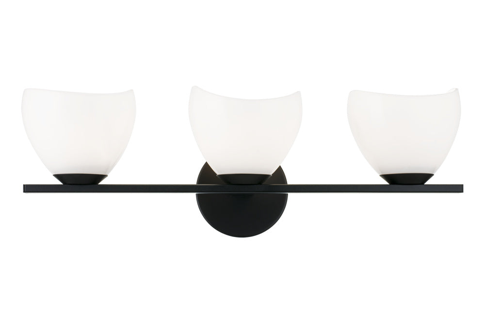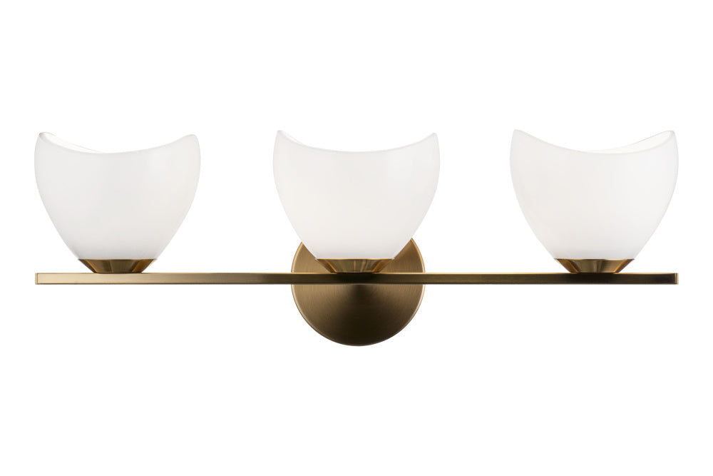 Uptowne is a dazzling family with distinctive curved opal glass. Available in Aged Gold Brass or Black.