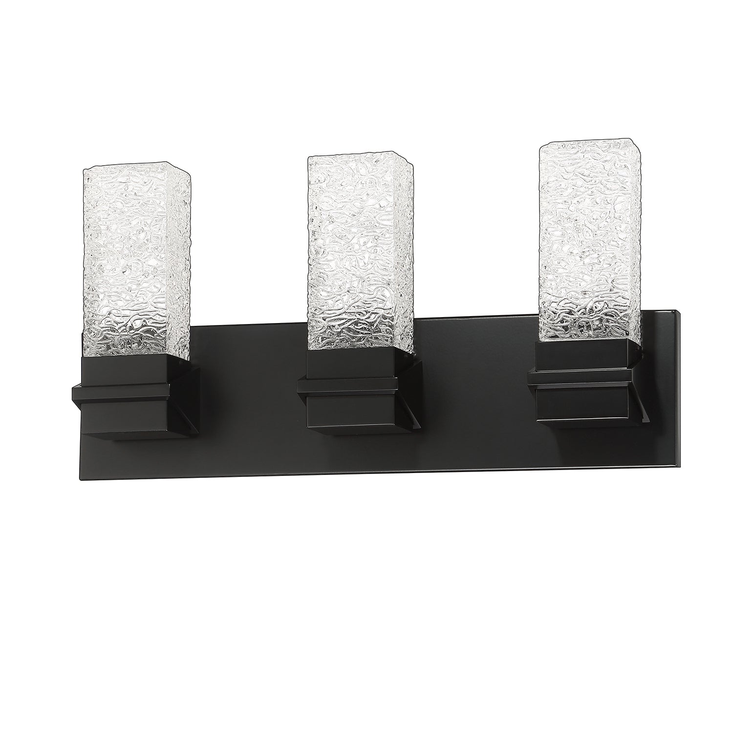 ICE 3-Light LED Bath & Vanity Light with Rectangular Water Grain glass in a Black finish
