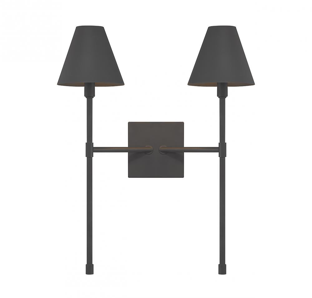 This Savoy House Jefferson 2-light sconce features a long sleek body, metal shades for indirect illumination and a classy, contemporary silhouette. Bisque white finish. Jefferson is 20" in height, 16" in width and extends 7" from the wall. It uses two candelabra size bulbs of up to 60 watts per bulb (bulbs not included).