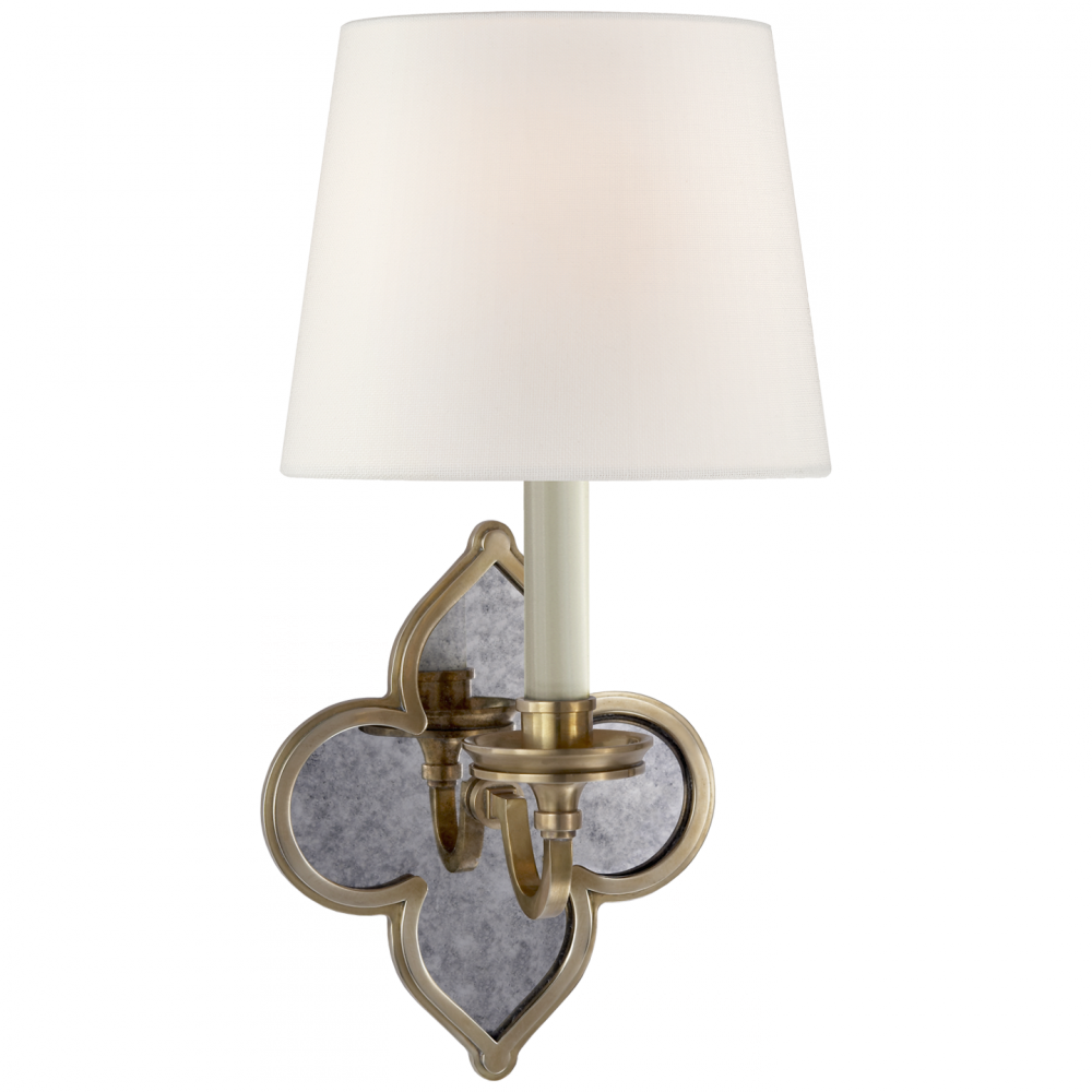 Lana Single Sconce in Natural Brass and Antique Mirror with Linen Shade