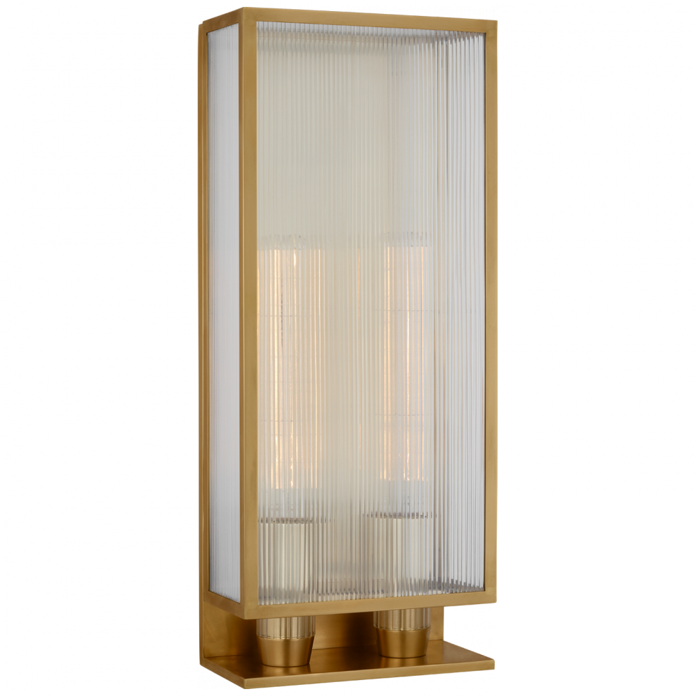 York 24" Double Box Outdoor Sconce in Soft Brass with Clear Ribbed Glass