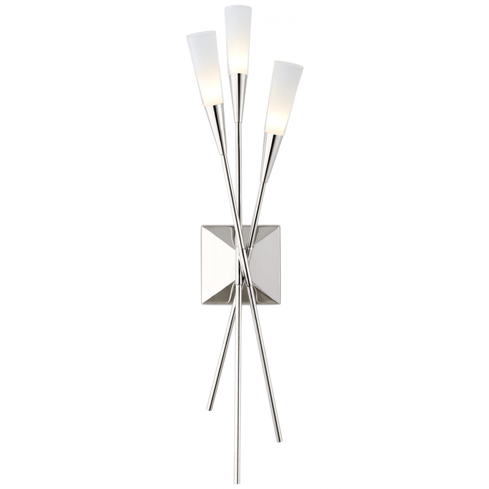 Stellar Triple Tail Sconce in Polished Nickel with Frosted Acrylic