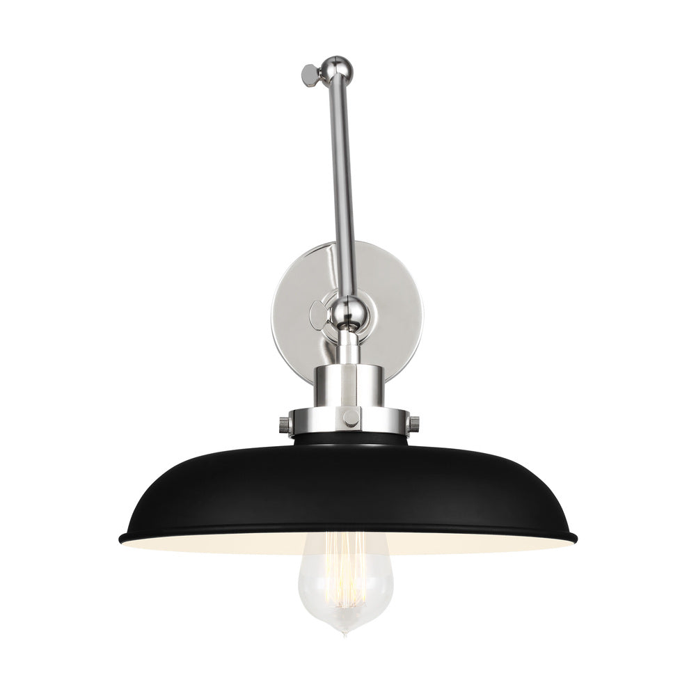 The Wellfleet one light wall sconce by Chapman & Myers is inspired by various classic utility silhouettes - from factory lighting to barn sconces - capped by contrasting metal hardware. Each shade of the Wellfleet collection is available multiple sizes of 3 versatile profiles; either a flat farm dome, a traditional factory dome, or tapered cone. The shades are available with either a black or white finish and are paired with either a burnished brass or polished nickel collar, chain and canopy.