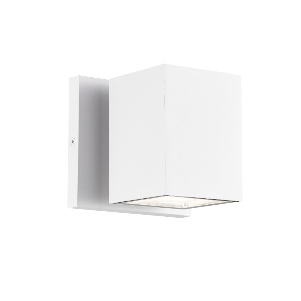 A minimalist, modern LED exterior wall light with a cube-shaped design. This type of light fixture typically directs light downward, but also has an option for upward & downward, making it ideal for accent lighting on outdoor walls, pathways, or near doorways. Its clean lines and compact design make it a versatile option for both residential and commercial outdoor spaces, fitting well into contemporary and minimalist architectural styles.