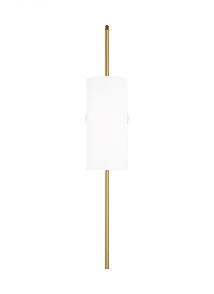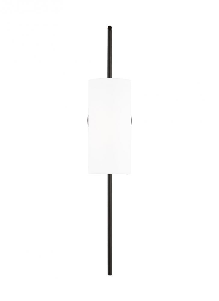 The Lowell wall sconce by Ellen DeGeneres has a mixed-material look that brings the perfect amount of coastal and farmhouse style to your bedroom or bathroom. The arm connects to a crisp white fabric shade in a cylinder shape that disperses light from a 60W bulb (not included).