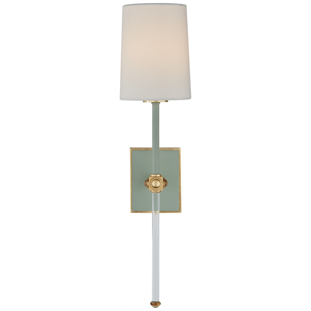 Lucia Medium Tail Sconce in Celadon and Crystal with Linen Shade