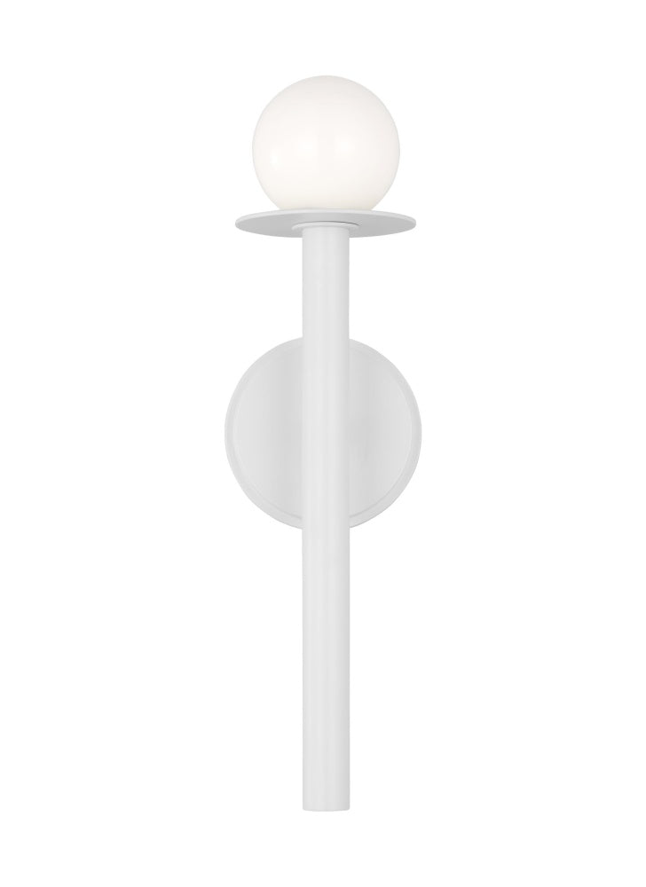 Nodes task, ceiling and wall lighting is minimal yet bold, highlighting Kelly's distinctive juxtaposition of mixed-materiality and curvilinear form. Light radiates from milk glass globes set against metal discs. All fixtures can be used or without the discs. The cast canopy is available in modern finishes. Hanging fixtures within this family feature black fabric cords, while pivot sconces can be cord and plug or hard wire.