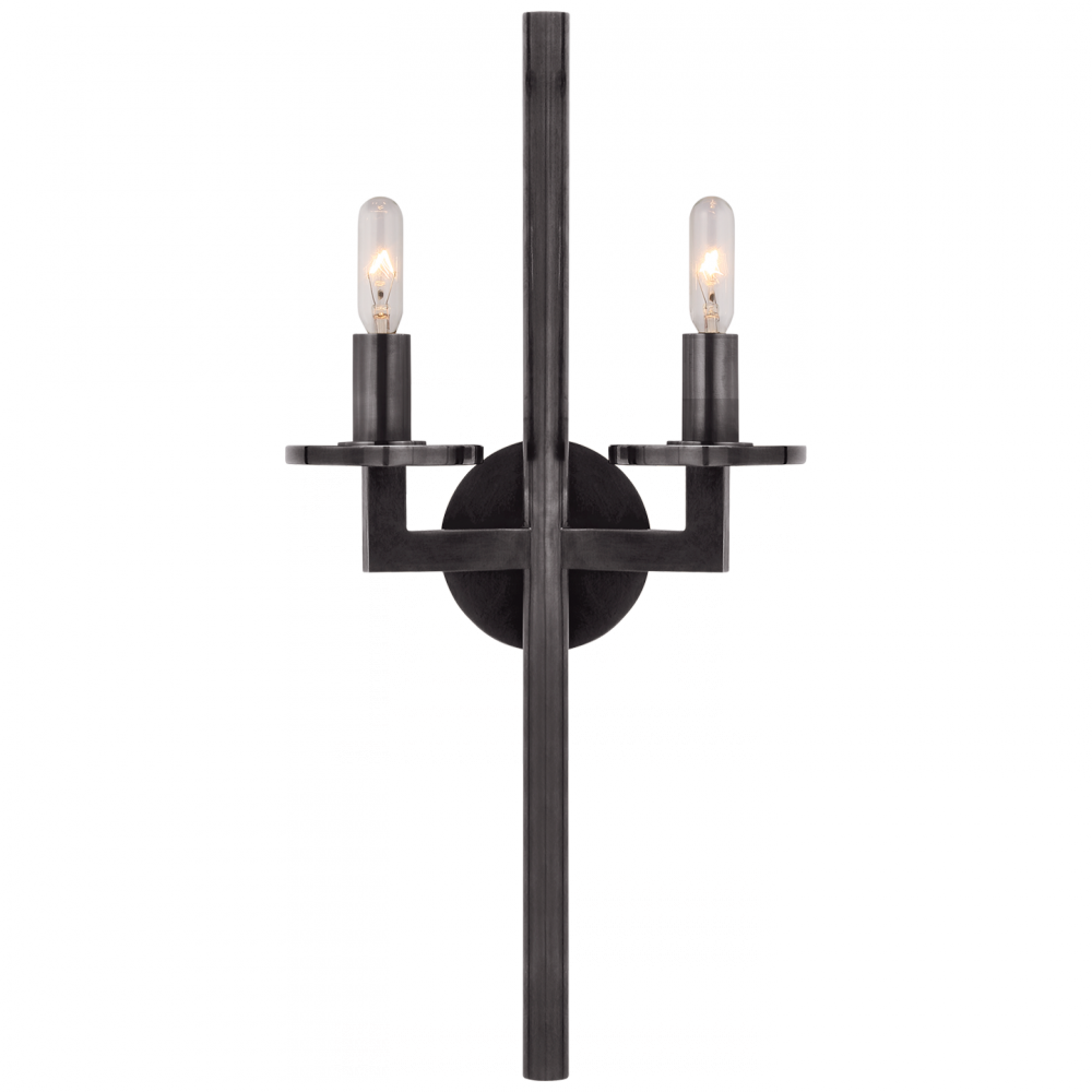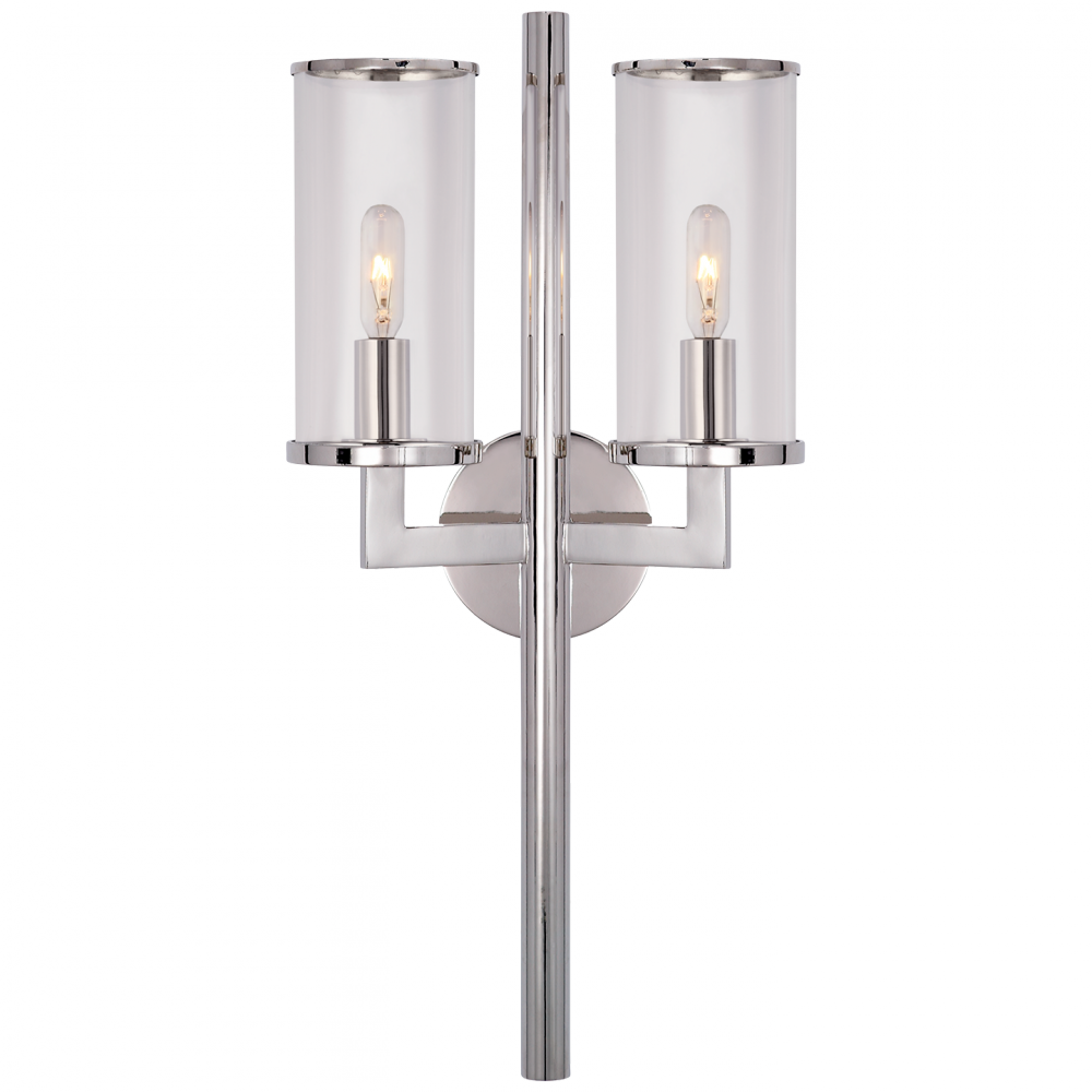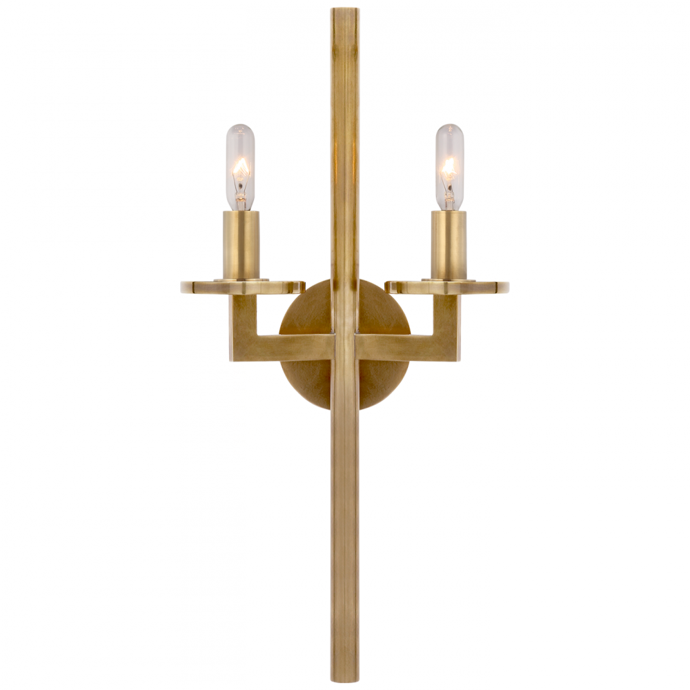 Liaison Double Sconce in Antique-Burnished Brass with Clear Glass