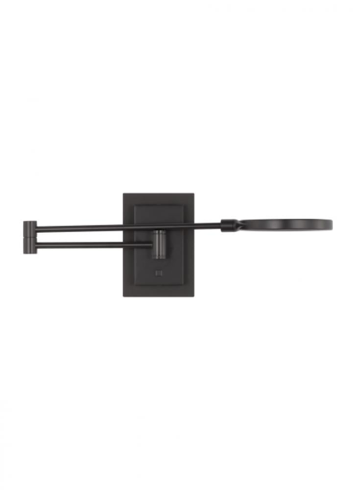 The Spectica task sconce by Sean Lavin is an entirely modern take on the traditional wall sconce. This artful and energy-saving piece features a beautiful round light source that provides ample amounts of light onto the surfaces below. Modest in size, the Spectica task sconce measures 4.5 in length, 28 in width, and 5 in height. It is ideal for bedrooms, hallways, and closets. Available in modern, on-trend finish options. The Spectica houses a fully dimmable unidirectional Integrated LED light source.