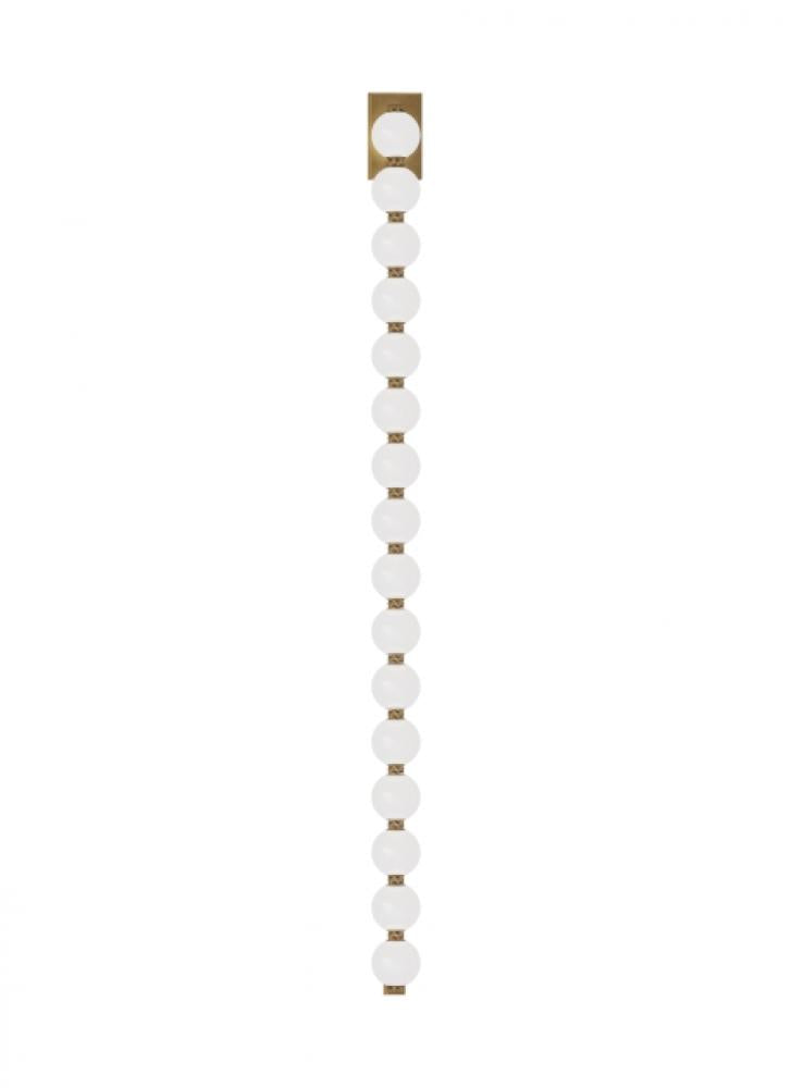 The Perle by Sean Lavin is a stunning extension to the popular Collier Series, now offered in soft white glass to provide a different design presence in a room. Available in multiple-length strands for the ultimate customization. Perle can be hung straight down in pendant form or draped from two mounting points for a striking chandelier utilizing the surface canopy or more minimal remote driver canopy. Interweave individual stands to create incredible light sculptures with stunning illumination. The natural brass connectors are custom engineered to support the glass and add additional beauty to the piece. Available with remote or surface-mounted driver options. Predetermined length options allow easy ordering with virtually unlimited versatilitycontact the factory for custom configurations. Patent pending.