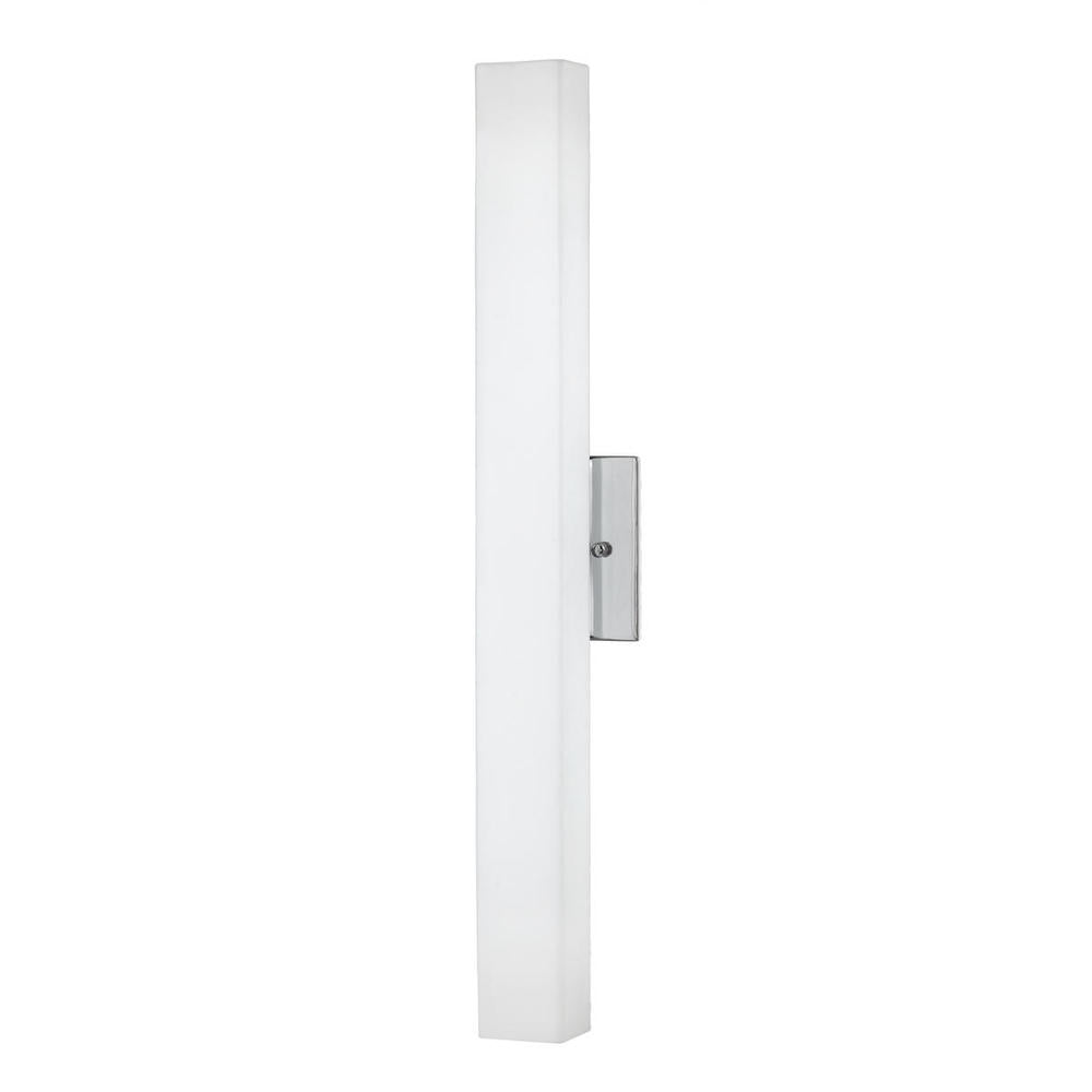 LED wall sconce with rectangular shaped white opal glass. Metal details in brushed nickel or chrome finish and is equipped with our powerful 12V AC LED technology. Available in for two different styles and sizes, view series for more details.