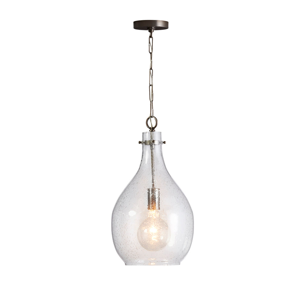 The Organic Texture And Visual Grit Of Stone Seeded Glass Is Created By A Special Process Of Rolling The Hot Glass Over Gravel. Combined With A Brushed Nickel Finish, These 1-Light Glass Pendants Take Eclectic Style Up A Few Notches.