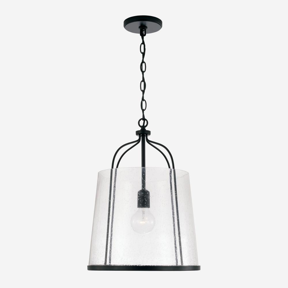 Chic curves and clean lines create the Madison Pendant for Homeplace. The Brushed Nickel finish adds texture and accents the seeded glass for standout style.