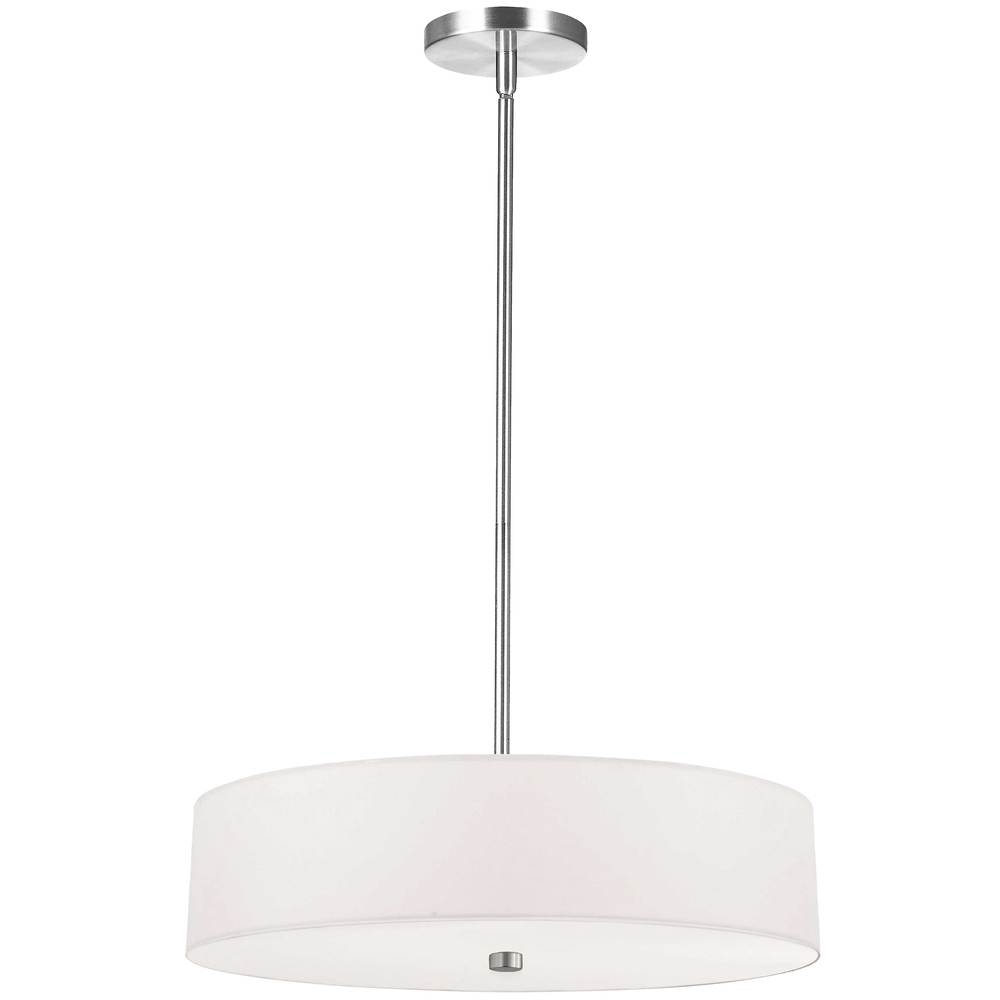 Mid-century, modern or contemporary, the Everly family of lighting will add a fashionable presence to your home dcor. The pendant design comes in a one or two tier construction. The metal frame drops to a relatively narrow drum shade, with a contrasting inner shade. From the metal frame to inner and outer shades, color options range from monochromatic to dramatic contrast. With its elegant proportions, the Everly family of lighting brings an element of luxury to foyers, living rooms or kitchens.