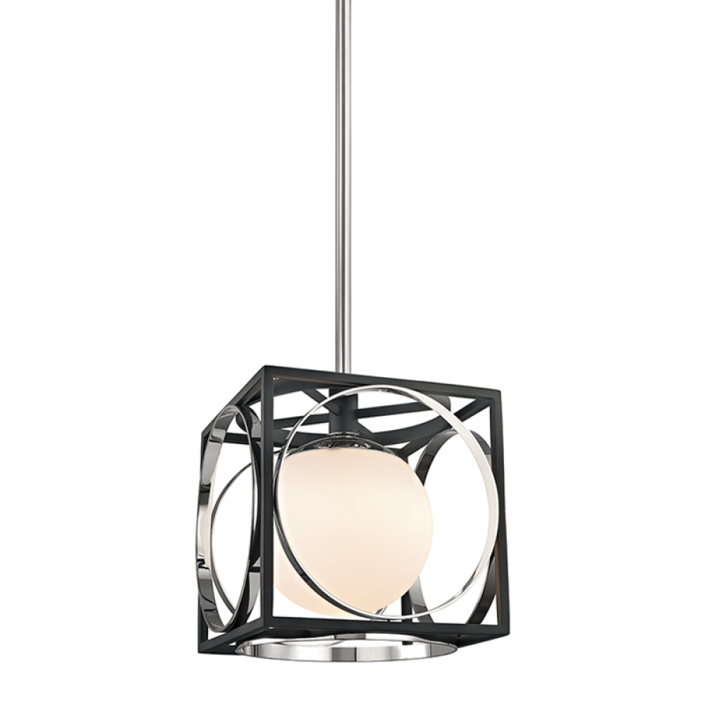 Geometry is the study of figures in a space of a given number of dimensions and of a given type. Our Wadsworth brings the circle and the square of this ancient science to an artistic three-dimensional setting, with an opal glass sphere shade poised at the heart of a textured black cube.