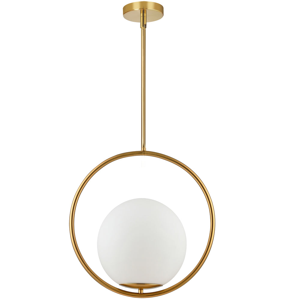 A circle within a circle it's a pleasing concept that makes up the heart of the Adrienna family of lighting. The contrast of a defined open circle frame and glowing globe light adds a multi-dimensional effect. A metal frame in choice of finishes curves around in a perfect circle or oval, available in both pendant drop and table configurations. White glass globes house the light for a look that is reminiscent of pop art. Modern Adrienna lighting will add a stylish focal point to kitchens, dining rooms, hallways and any accent table where you want to draw the eye.