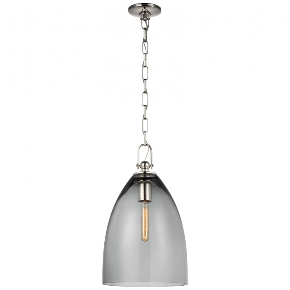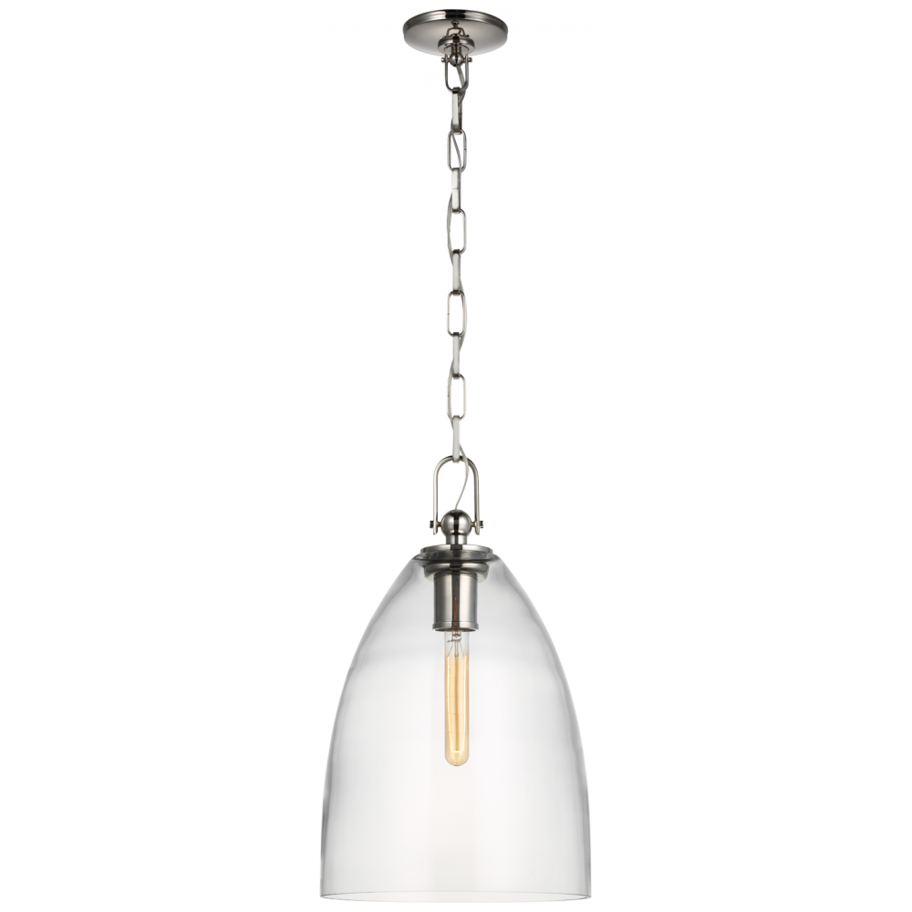 Andros Large Pendant in Polished Nickel with White Glass