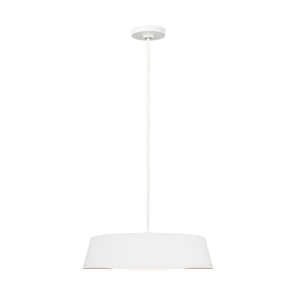 The Asher five-light indoor pendant in matte white supplies ample lighting for your daily needs while adding a layer of today's style to your home's dcor. The Asher is contemporary with time-honored appeal in a low profile yet large-scale silhouette that exudes understated elegance. Available in either a Midnight Black or Matte White exterior finish, both versions utilize an artisanal, hand-applied treatment of real gold leaf that lines the shade's interior. At the same time, a silk screen glass diffuser softens the illumination.