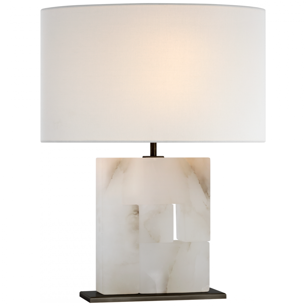 Ashlar Medium Table Lamp in Alabaster and Hand-Rubbed Antique Brass with Linen Shade