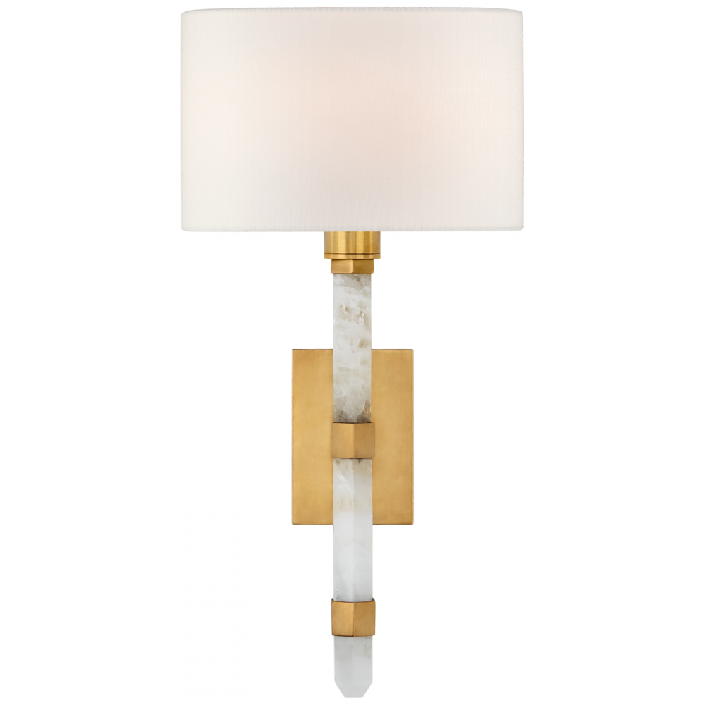 Adaline Small Tail Sconce in Polished Nickel and Quartz with Linen Shade